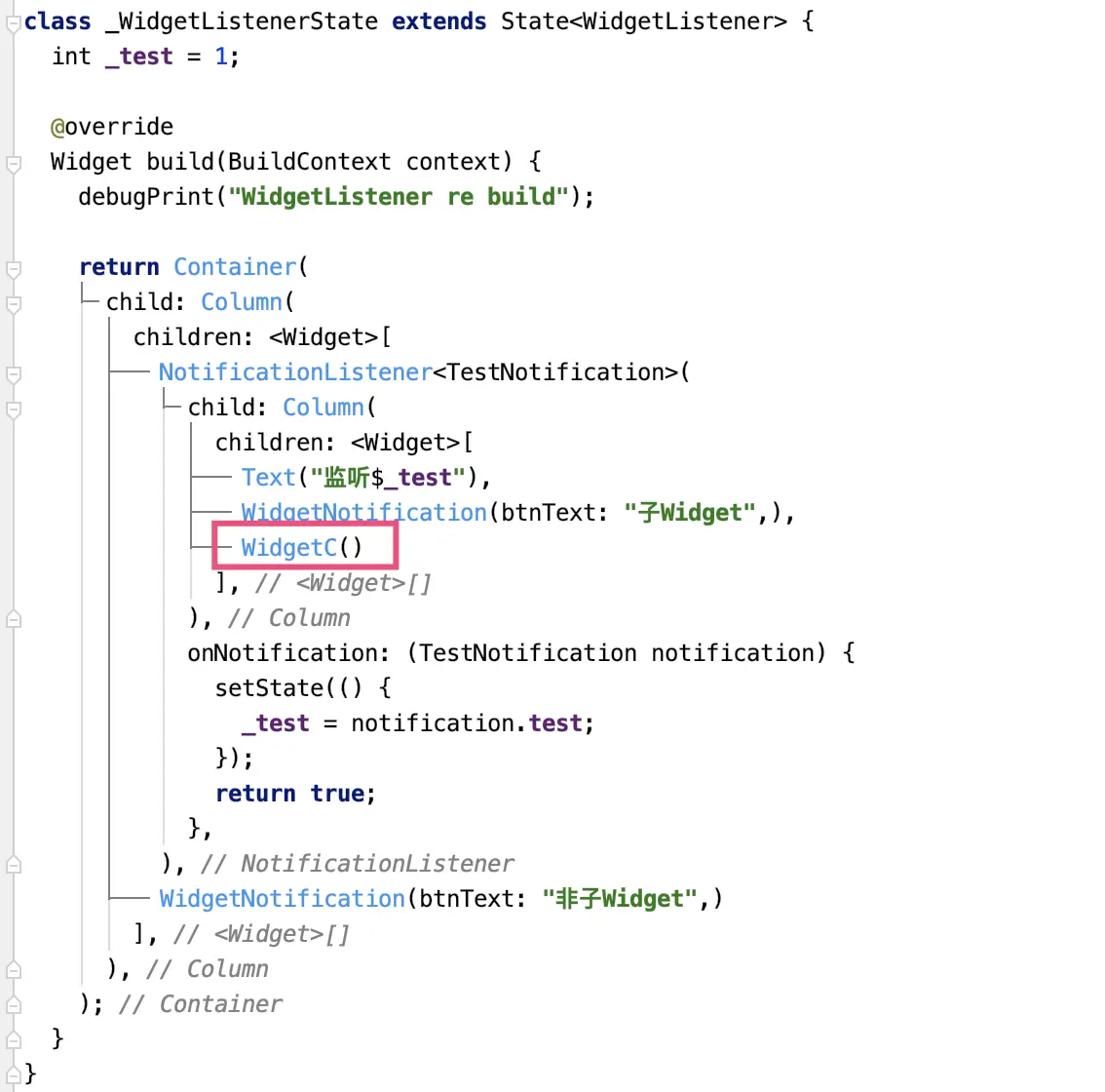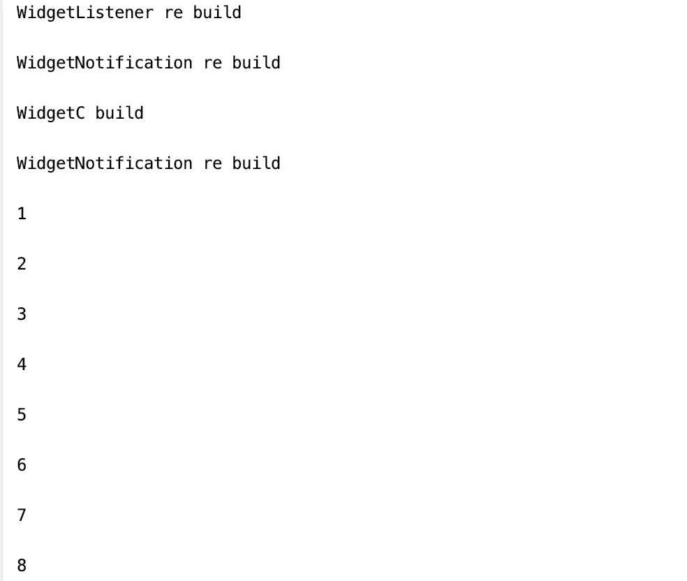 - WidgetNotification 实例化了两次,一次在NotificationListener的树内部,一个在NotificationListener的外部,经过测试发现,在外部的WidgetNotification并不能通知到内容变化。
