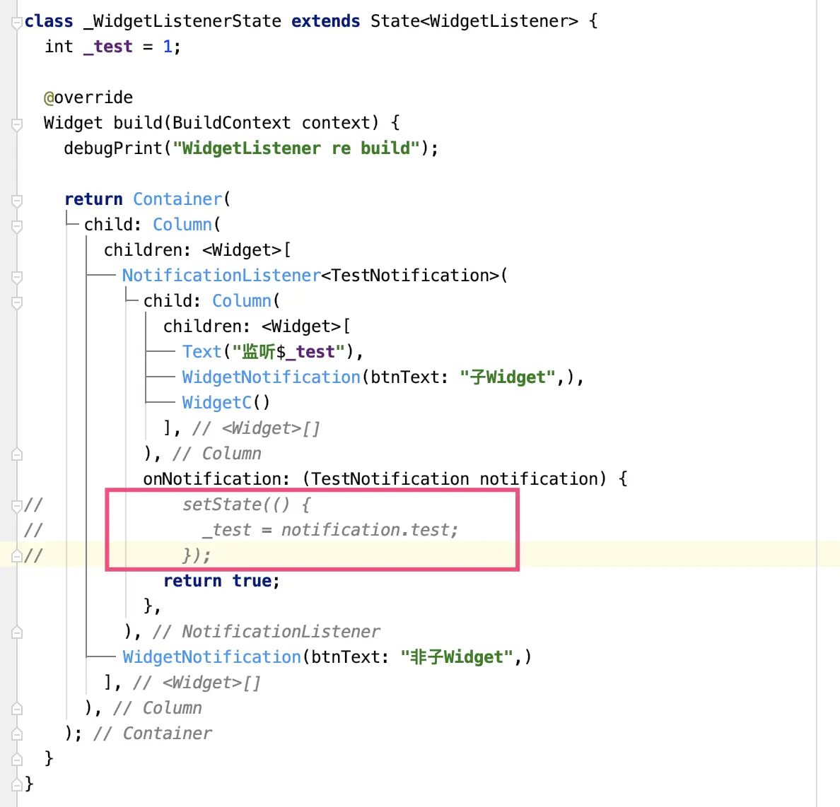 同样的思路,我想看下Notification是如何刷新Ui的 在代码里加入了跟通知无关紧要的WidgetC
