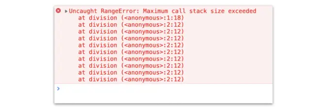 栈相当于一个杯子,杯子里的内容遵循先进后出的规则。而杯子是有容量的,在入栈太多而出栈太少的时候,杯子会装满,js 里称为“栈溢出”。特别是递归的时候,就很容易出现这种情况,此时浏览器会报错: