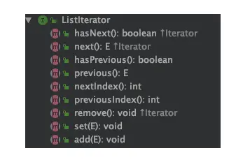 private class ListItr extends Itr implements ListIterator<E>;//增加了向前遍历的功能,以及set(E e)(这个更新上一个返回的位置元素为e),add(E e) (再下一个要返回的位置增加元素e)