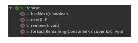 //迭代器方法返回一个实现迭代器接口的内部类实例