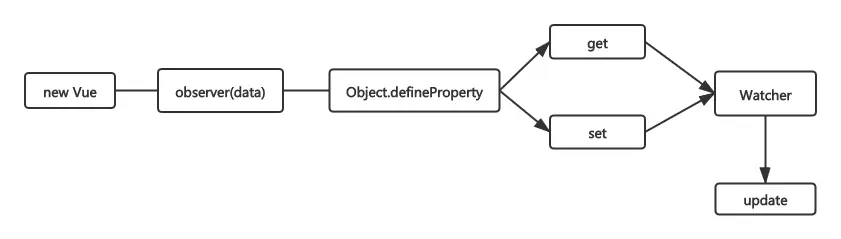 知道了Object.defineProperty基本属性后,咱们通过observer来观察对象,observer会在Vue在init阶段会进行初始化,对数据进行响应式绑定。