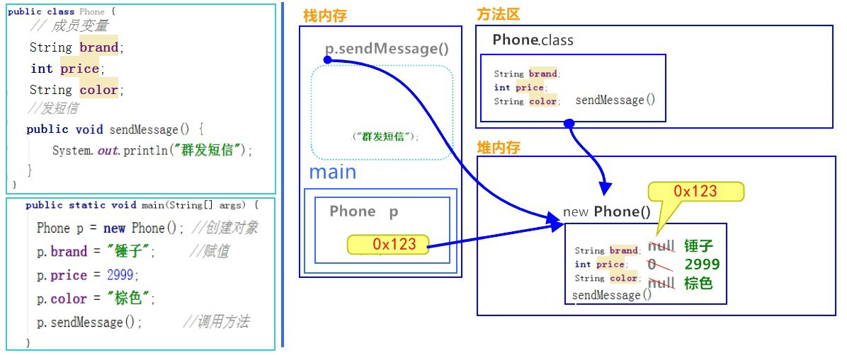 对象调用方法时,根据对象中方法标记(地址值),去类中寻找方法信息。这样哪怕是多个对象,方法信息 只保存一份,节约内存空间。
