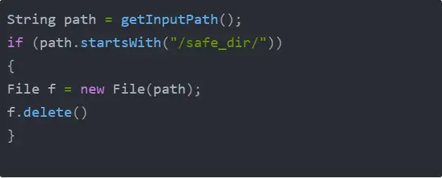 下面的代码尝试检查给定的输入路径,并在验证安全之后删除给定的文件。在本例中,如果路径以字符串“/safe_dir/”开头,则认为该路径是安全的。