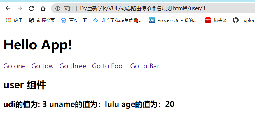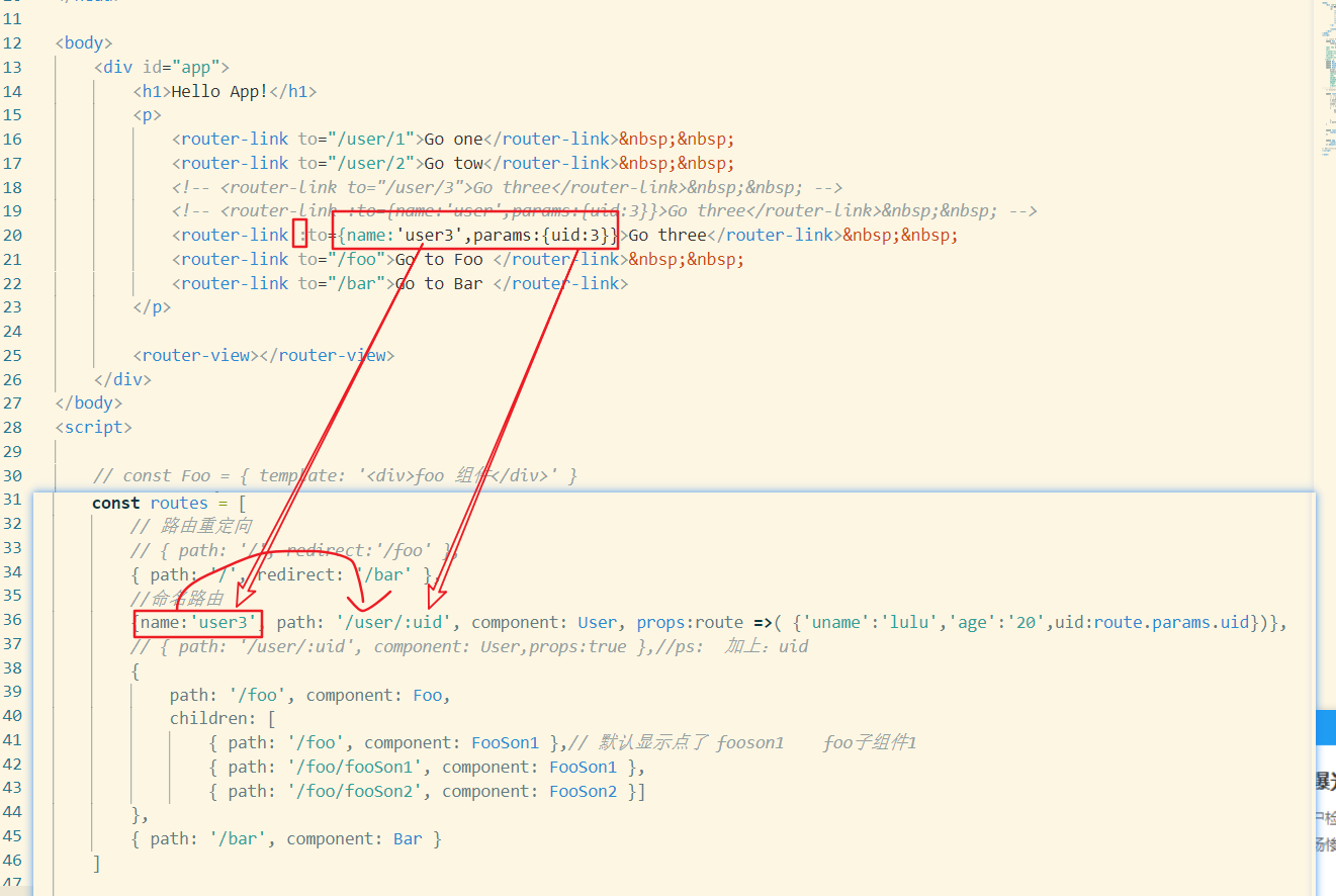 <router-link :to={name:'user3',params:{uid:3}}>Go three</router-link>