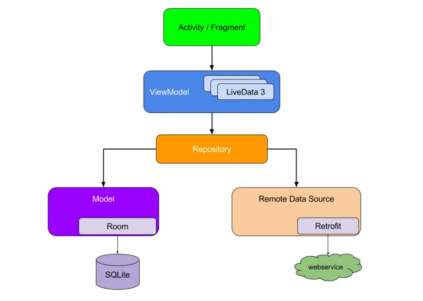 随着业务的不断扩张,ViewModel的内容可能会不断膨胀,那么独立出ViewModel的业务逻辑,划分到不同的领域(Use Cases)当中是有必要的,符合单一职责的指导思想,也有利于case的复用。体现到上图中,就是在ViewModel和Reposity添加一个层级,里面包含了不同的case,ViewModel通过组合、依赖注入的方式获取Cases的能力。