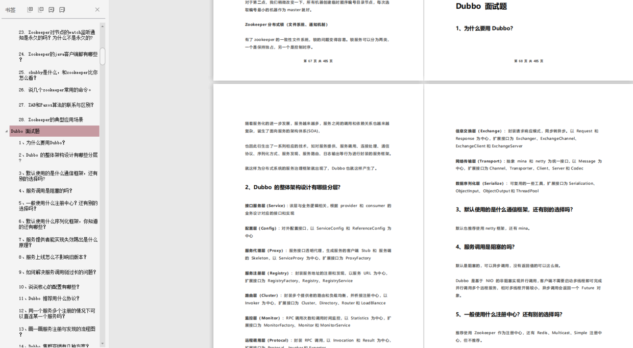 1、为什么要用 Dubbo? 2、Dubbo 的整体架构设计有哪些分层? 3、默认使用的是什么通信框架,还有别的选择吗? 4、服务调用是阻塞的吗? 5、一般使用什么注册中心?还有别的选择吗? 6、默认使用什么序列化框架,你知道的还有哪些? 7、服务提供者能实现失效踢出是什么原理? 8、服务上线怎么不影响旧版本?