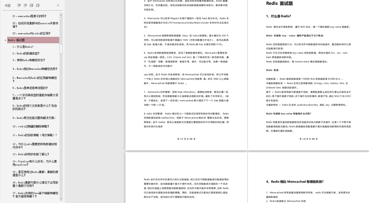 1、什么是 Redis? 2、Redis 的数据类型? 3、使用 Redis 有哪些好处? 4、Redis 相比 Memcached 有哪些优势? 5、Memcache 与 Redis 的区别都有哪些? 6、Redis 是单进程单线程的? 7、一个字符串类型的值能存储最大容量是多少? 8、Redis 的持久化机制是什么?各自的优缺点?