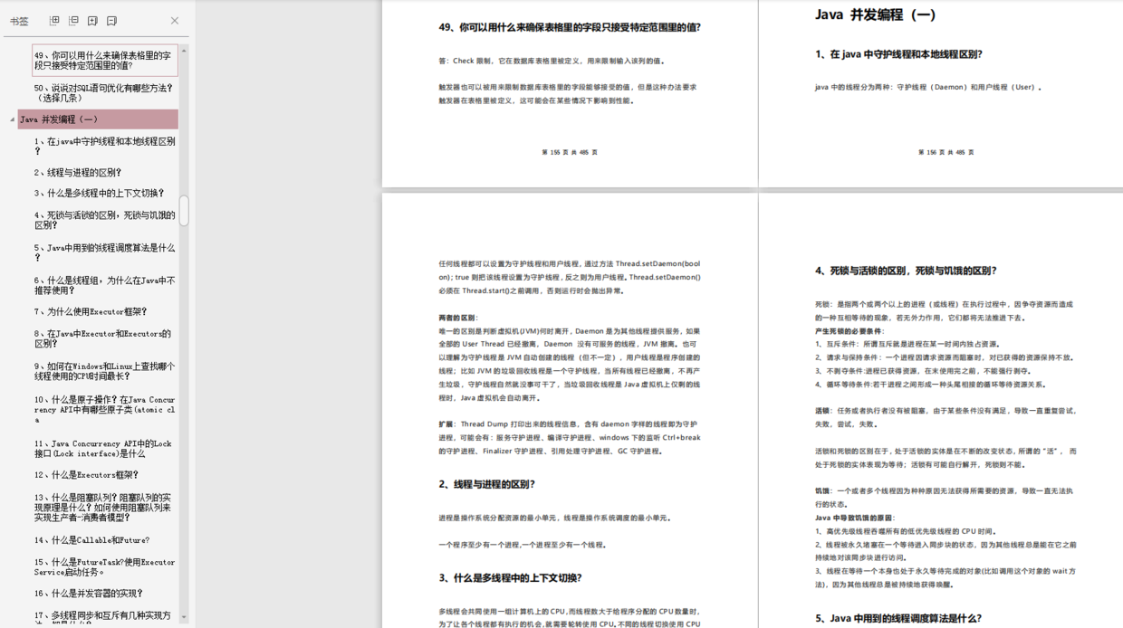 1、在 java 中守护线程和本地线程区别? 2、线程与进程的区别? 3、什么是多线程中的上下文切换? 4、死锁与活锁的区别,死锁与饥饿的区别? 5、Java 中用到的线程调度算法是什么? 6、什么是线程组,为什么在 Java 中不推荐使用? 7、为什么使用 Executor 框架?