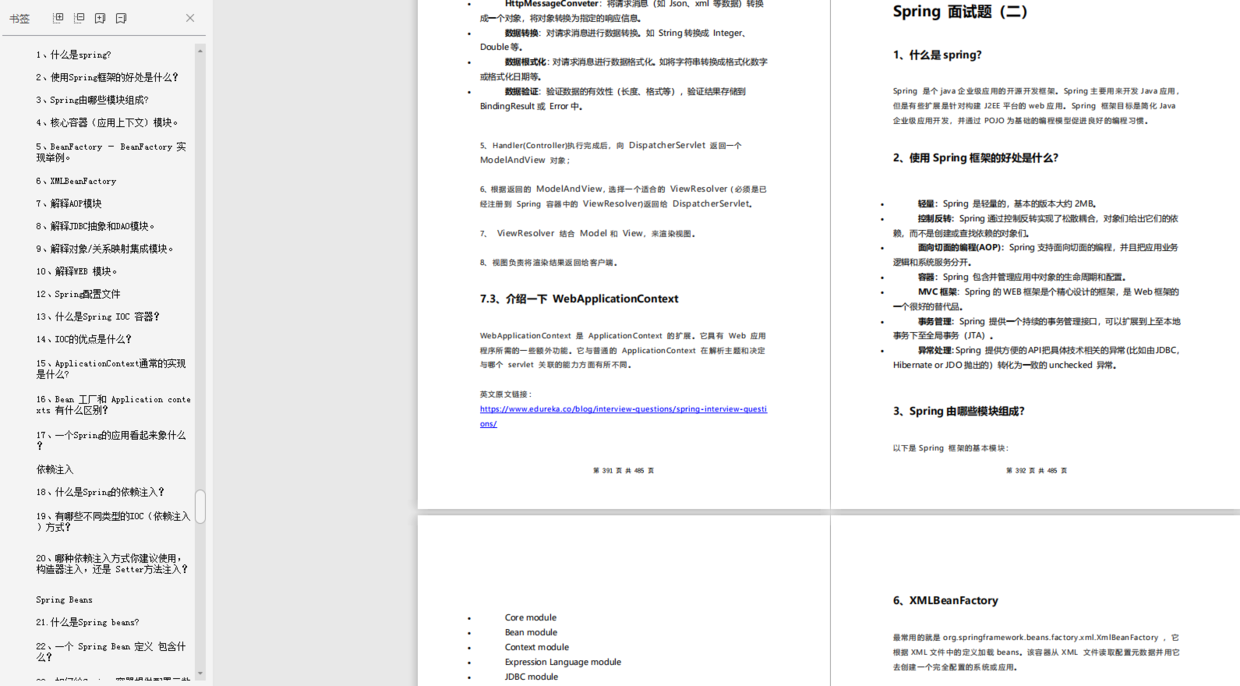 1、什么是 spring? 2、使用 Spring 框架的好处是什么? 3、Spring 由哪些模块组成? 4、核心容器(应用上下文) 模块。 5、BeanFactory – BeanFactory 实现举例。 6、XMLBeanFactory 7、解释 AOP 模块