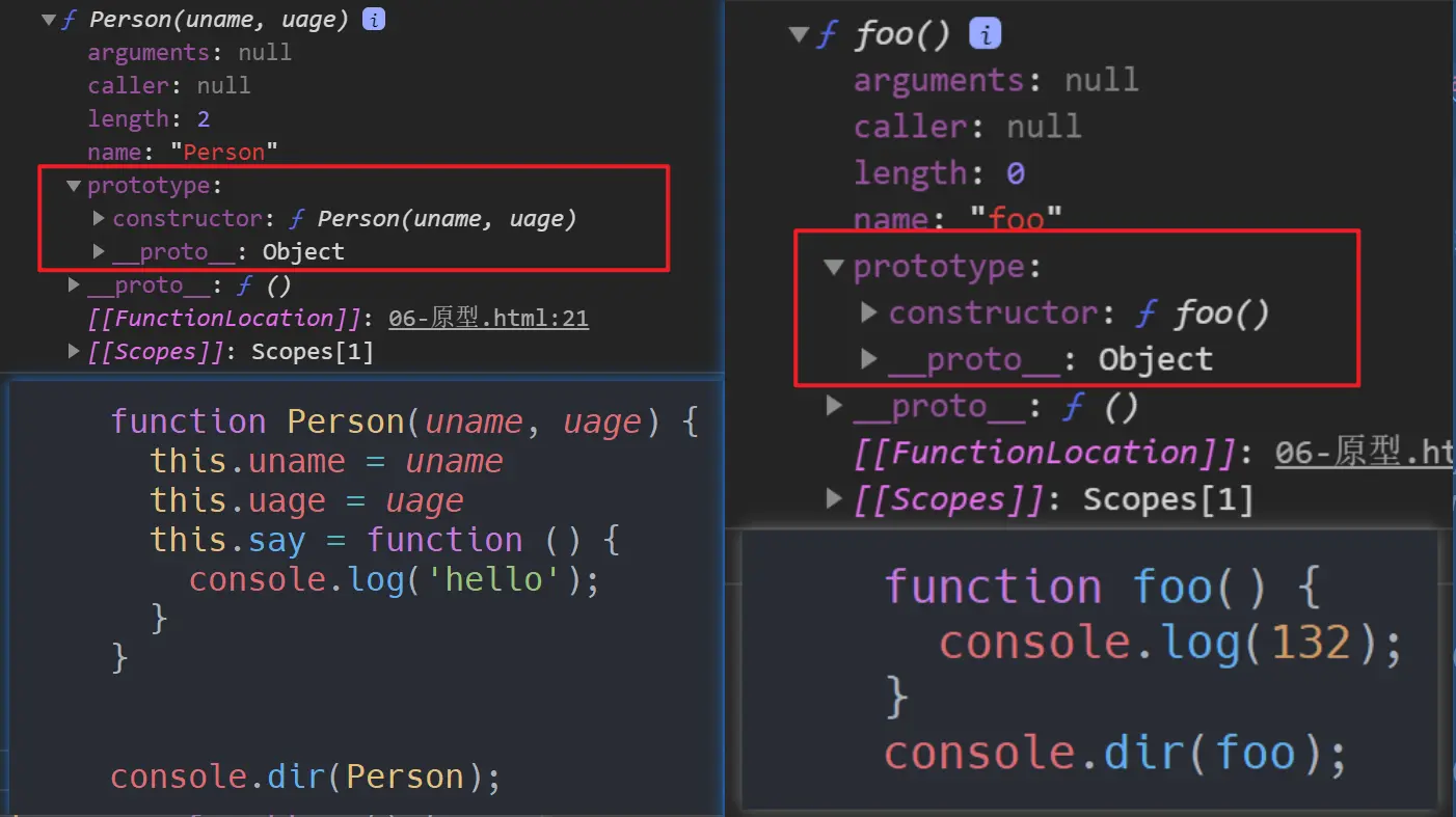 - 构造函数 通过 prototype属性来访问到原型对象