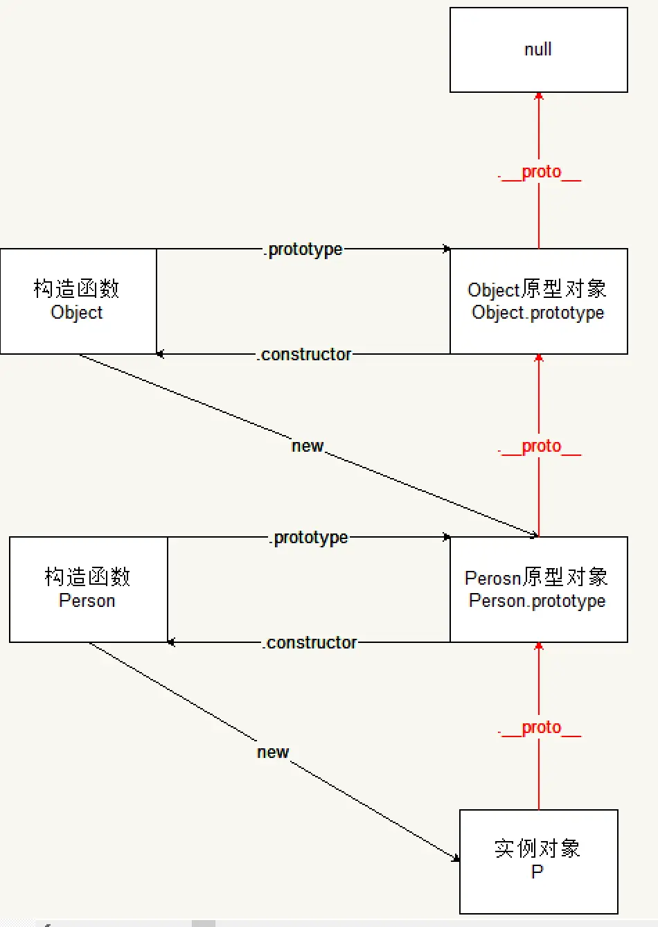 // p的原型链:p --> Person.prototype --> Object.prototype --> null