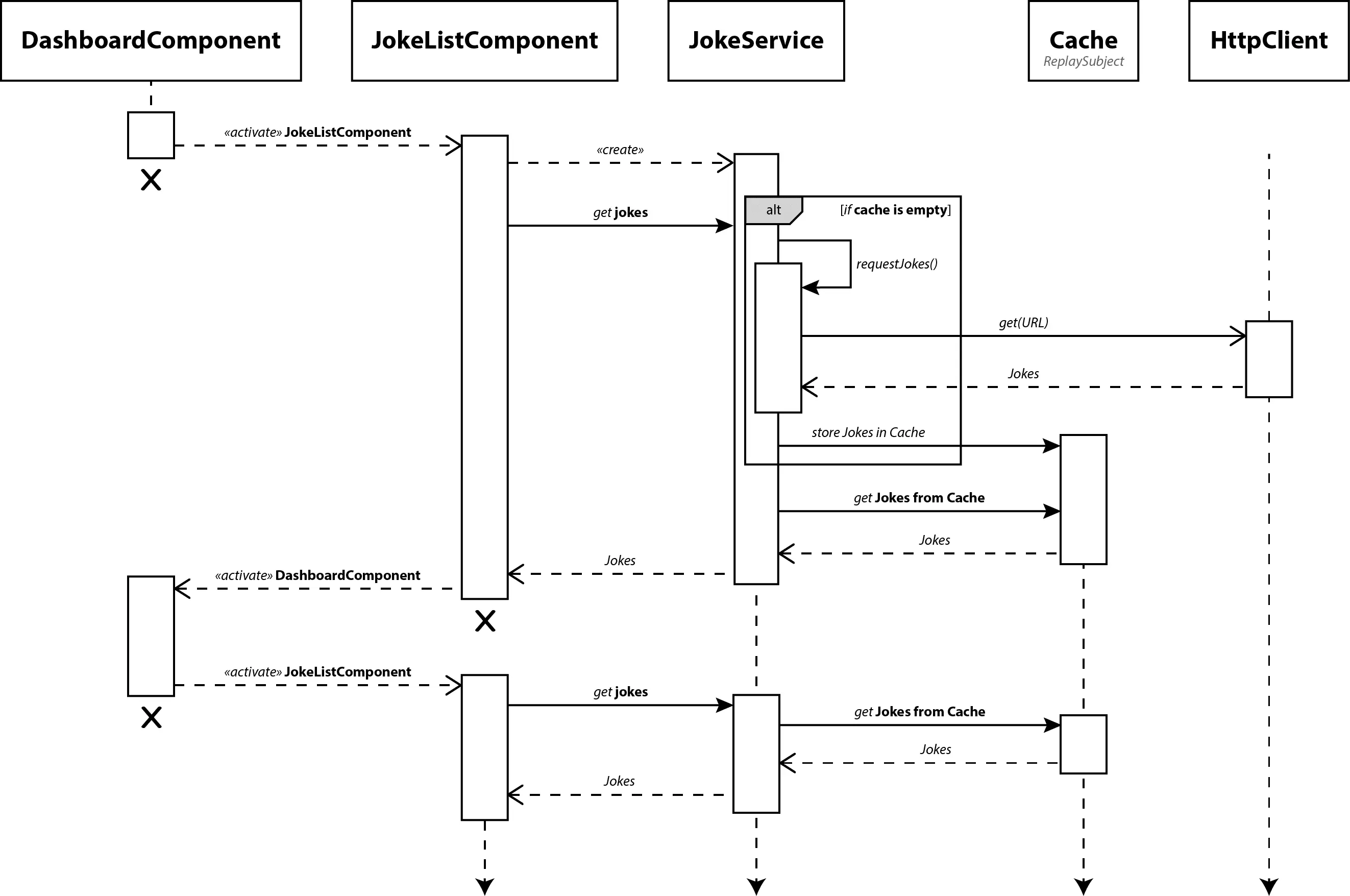 上图描述了我们的场景中涉及的对象,即请求一个Joke列表以及这些对象之间交换消息的次序。让我们细分一下,以了解发生了什么。