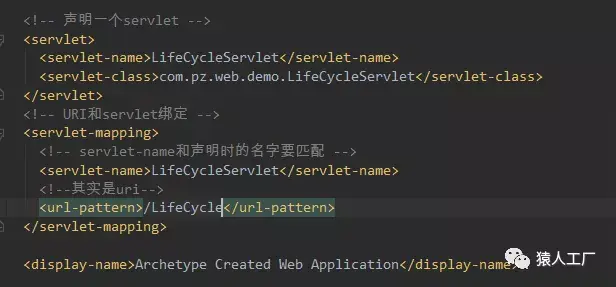 Servlet的生命周期,是指servlet加载、创建servlet对象、初始化(执行init()方法),调用service方法()、销毁的整个过程。servlet的整个生命周期都有servlet容器(web服务器)管理,不需要猿人的参与噢: