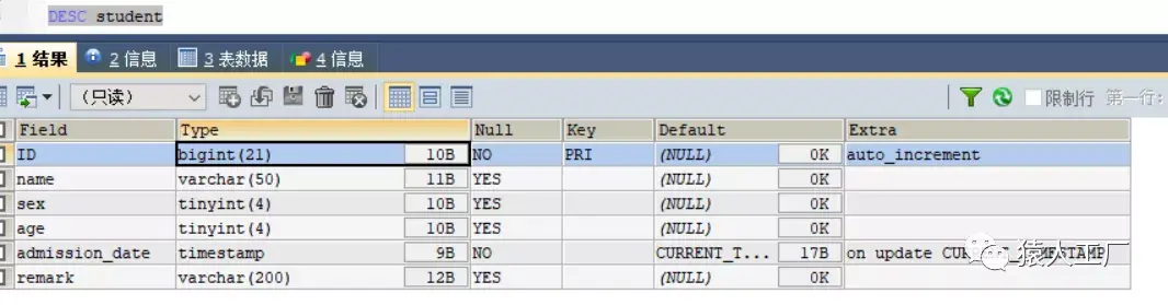 查看表结构:DESC 表名;