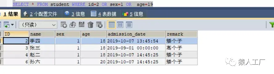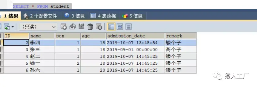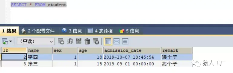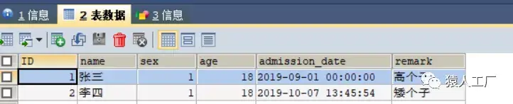 INSERT INTO student (name,sex,age,admission_date,remark) VALUES('李四',1,18,NOW(),'矮个子');