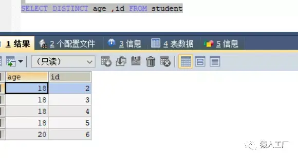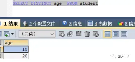 查询年龄,按年龄去重