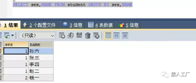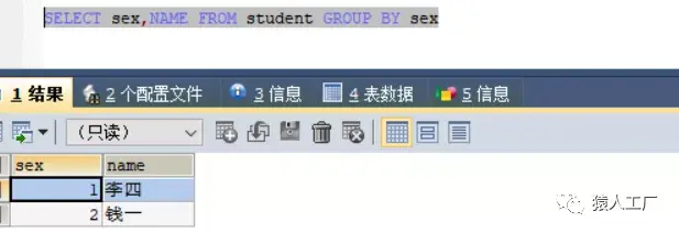 查询性别和名字,按性别分组: