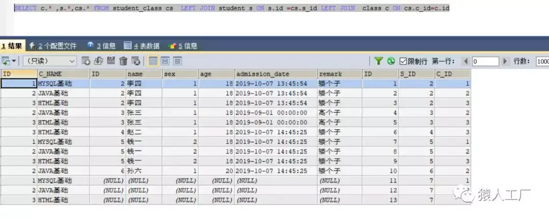注意:LEFT JOIN 和RIGHT JOIN的写法是看顺序的,大家看例子的时候要注意语句的例子的写法。