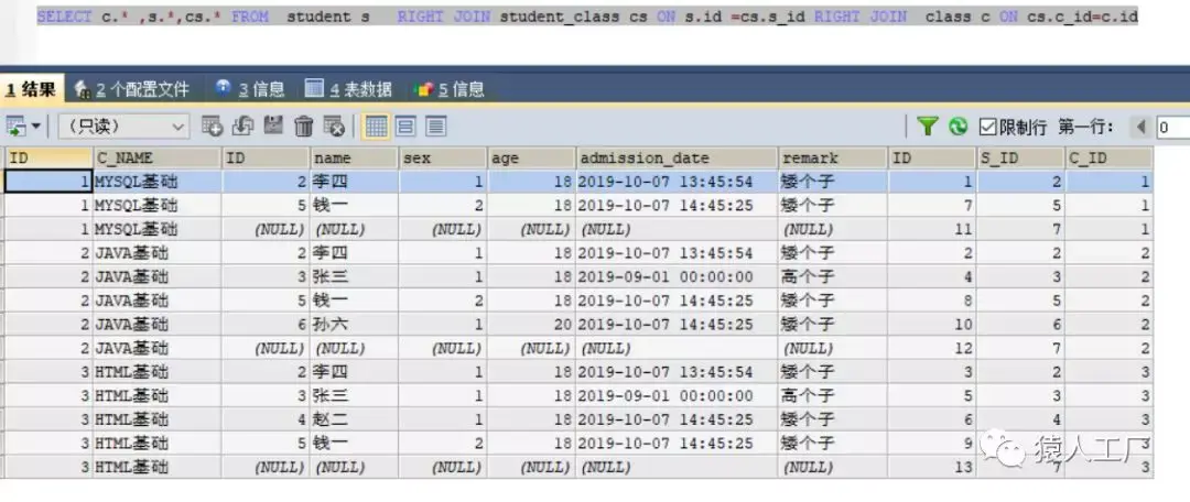 注意:STUDENT_CLASS 表中的C_ID的值和CLASS表的ID对应
