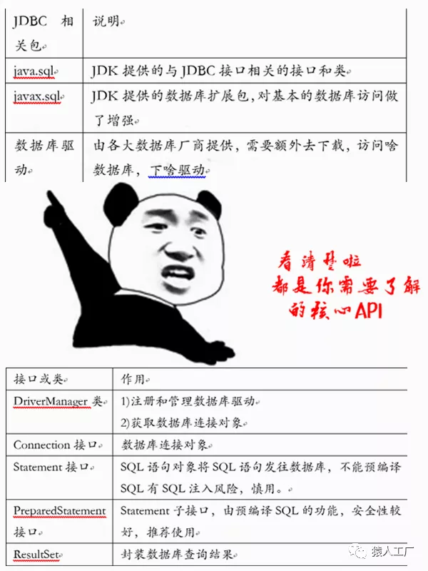 看到没?这就是规范的发展套路,你不实现我就不支持你访问,你要卖数据库,要想有人用你的数据库你必须要有驱动,要不然没人用。ODBC为啥渐渐的被人忘记,因为大家支持了SUN,不过对于猿人来说也是有好处的: