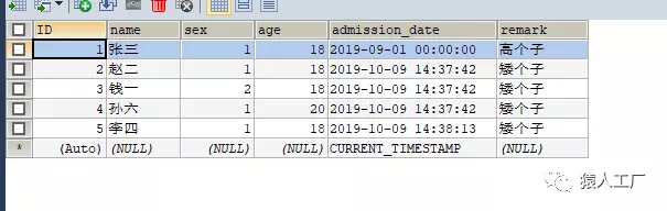 String sql="insert into student(name,sex,age,admission_date,remark) values(?,?,?,?,?)";