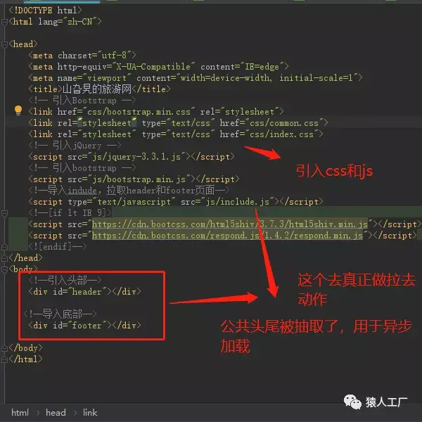 2.切割公共头部作为footer.html