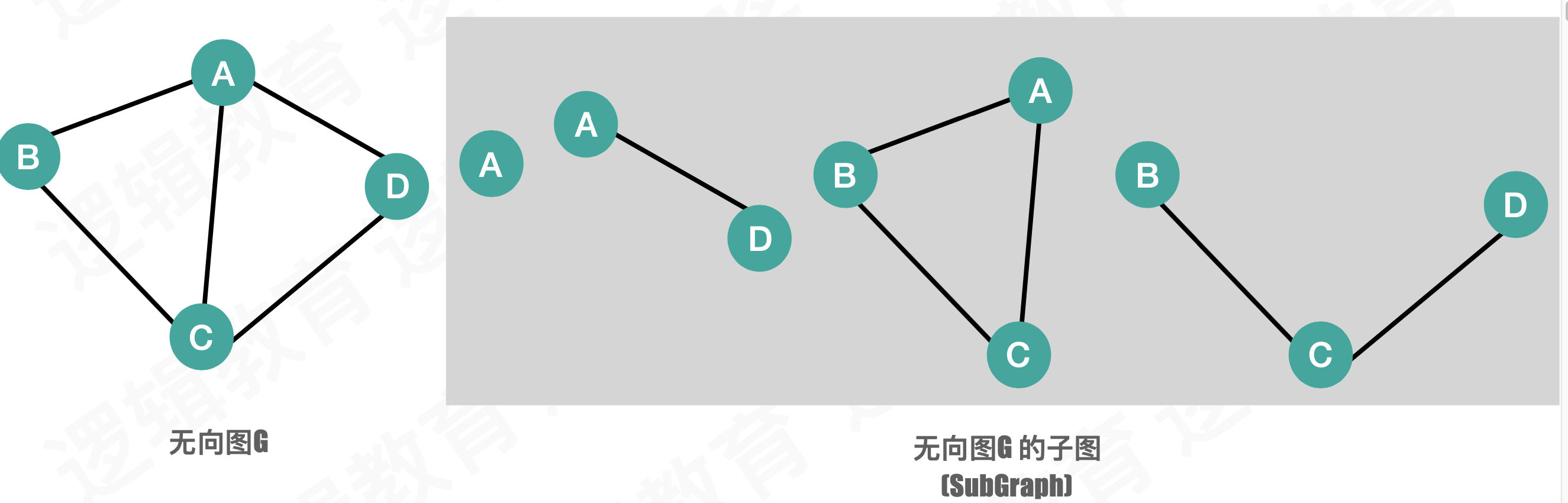 由图中一部分顶点和边构成的图,称为原图的子图。