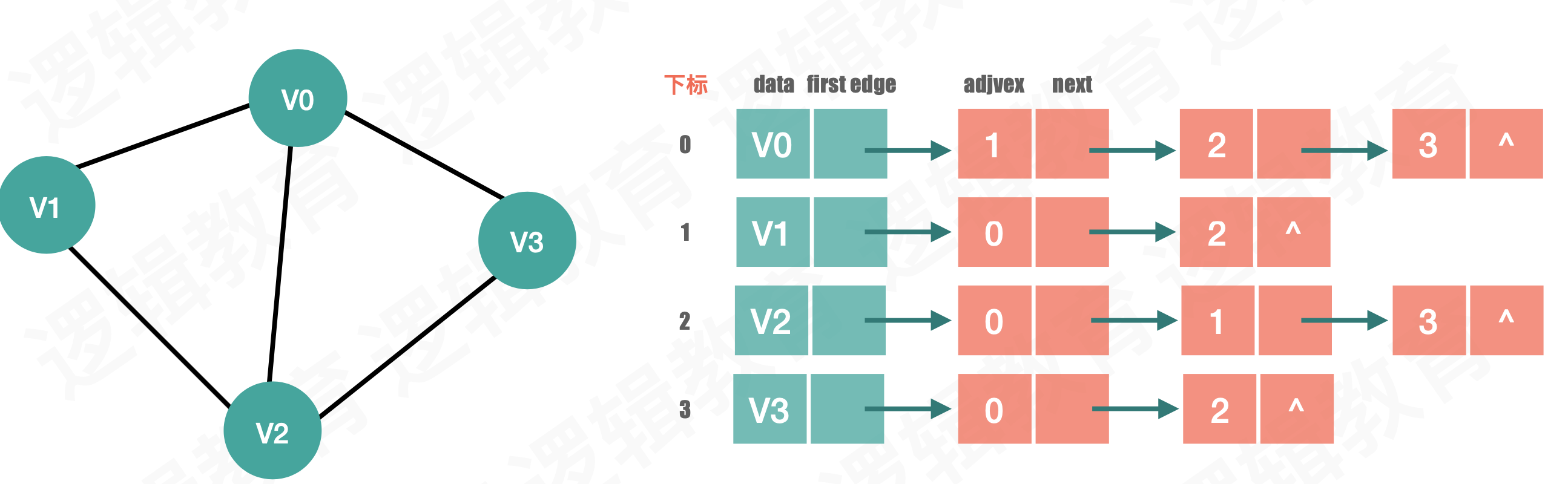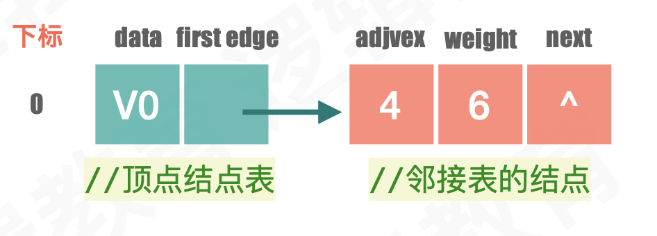 //③头插法插进去,插的时候要找到弧尾,那就是顶点数组的下标i