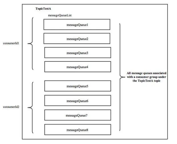 消息消费队列在同一消费组不同消费者之间的负载均衡,其核心设计理念是在一个消息消费队列在同一时间只允许被同一消费组内的一个消费者消费,一个消息消费者能同时消费多个消息队列。