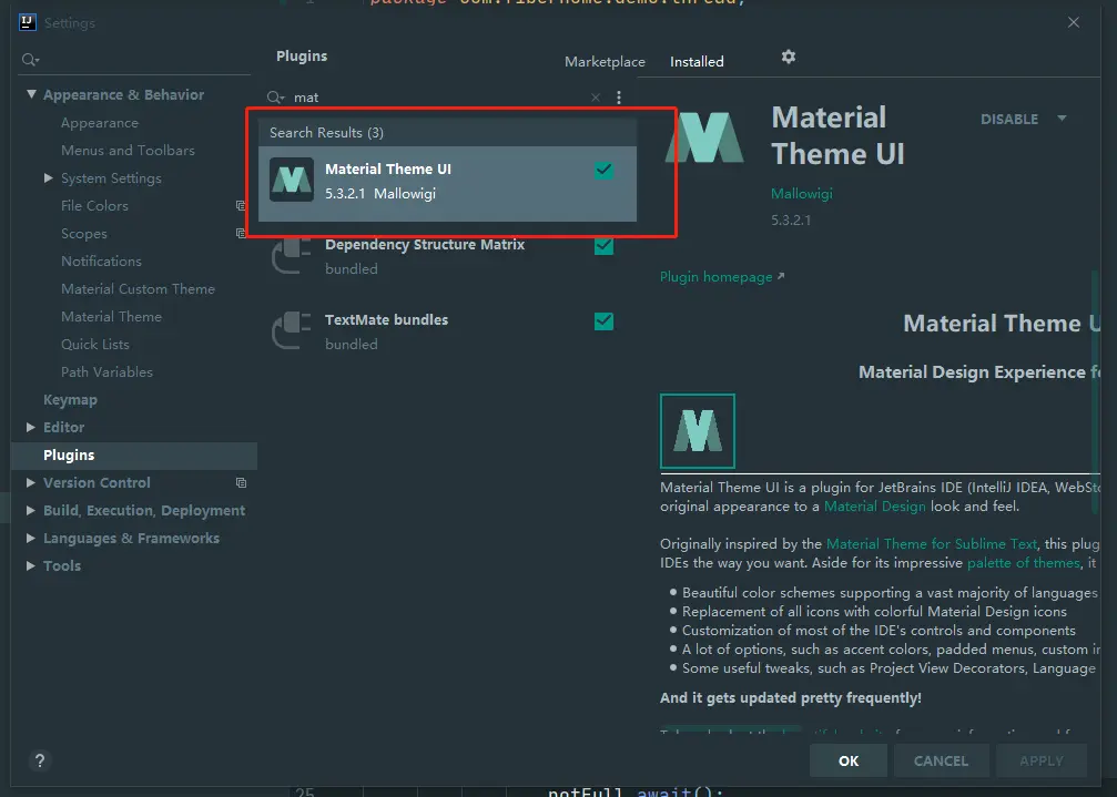 IDEA安装Material Theme UI 心晨 2020-05-22 2,317 阅读1分钟 由于公司内网原因,无法直接idea里面插件install,所以在官网先下载: plugins.jetbrains.com/plugin/8006… 下载后解压到JetBrains\IntelliJ IDEA 2020.1.1\lib下 然后在idea中再install下 然后重启后在appearance中设置喜欢的风格,调整字体大小至适合自己的即可。 最后效果: