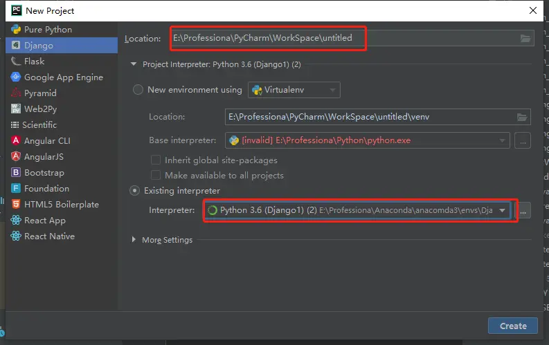 pycharm: File->New Project-> 选择Django,设置Django目录和环境