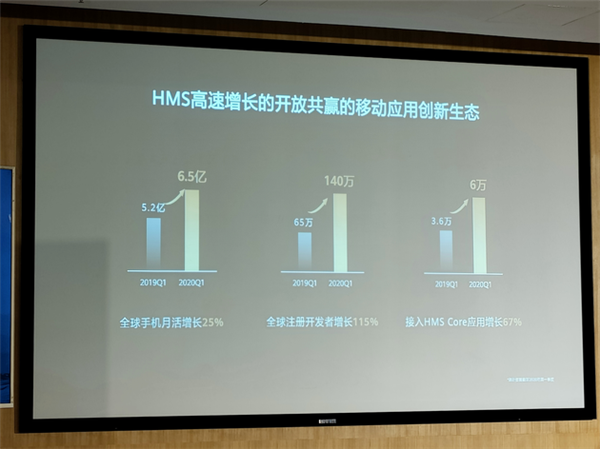 据了解,2020年第一季度,华为HMS全球手机月活增长25%,达到6.5亿。全球注册开发者增长115%,达到140万。到今年5月,这一数字已经增长到150万。接入HMS Core的应用数量超过6万款,同比增长66.7%。