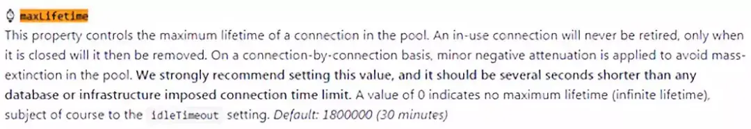 在这里纠结了很久,直到检查白条应用配置的时候看到了HikariCP的maxLifetime参数: