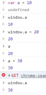 - 基于VAR/FUNCTION在全局上下文中声明的全局变量也会给GO赋值一份(存在映射机制:一个修改,另一个也修改)但是:基于LET/CONST/等ES6方式在全局上下文中创建的全局变量和GO没有关系