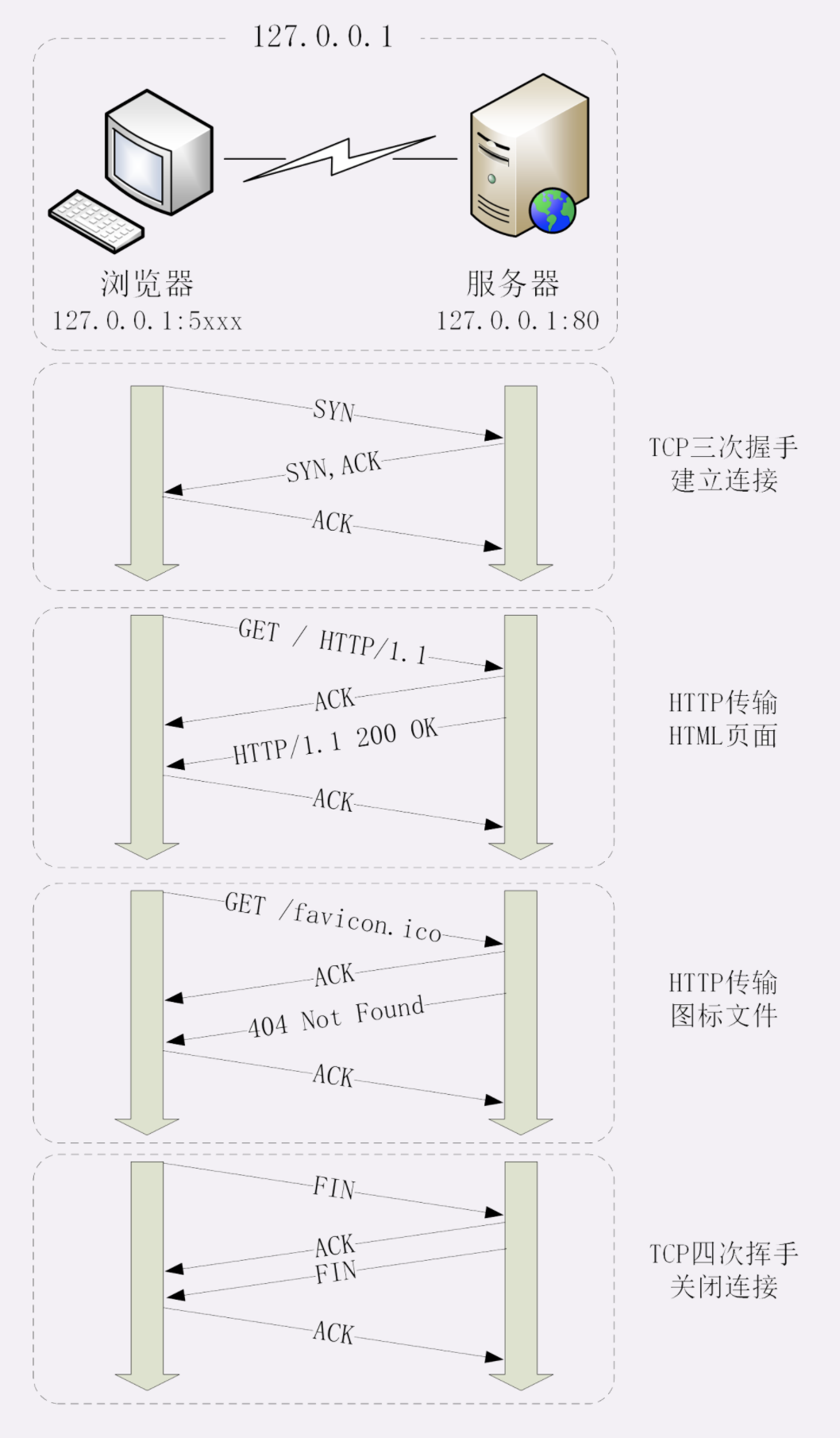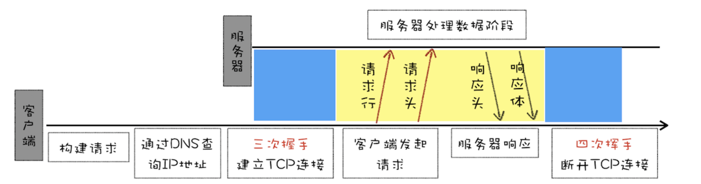 - 浏览器准备好请求数据(请求行+请求头+请求体),然后分帧层对每个请求进行分割,将同一个请求的分割块打上相同的ID编号,通过协议栈将所有的分割体发给服务器