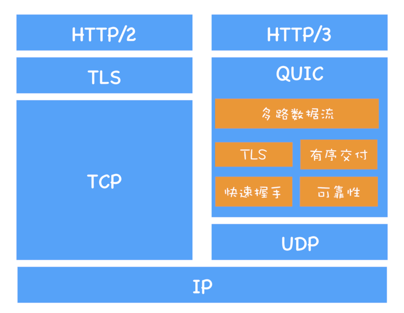 由于TCP协议的僵化以及底层包括中间设备的僵化,无法再进行修改,于是3.0基于UDP协议开发了QUIC协议