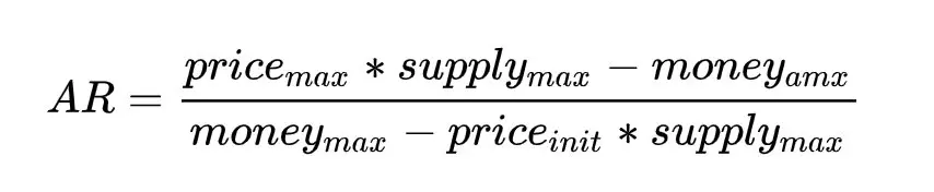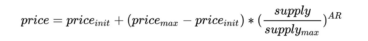 通过创建bancor时四种参数的不同组合,可以得到不同的AR,不同的AR可以产生不同的价格曲线,并且这个公式支持初始价格为0的场景,读者可能注意到,当AR=1时,该曲线退化为直线。