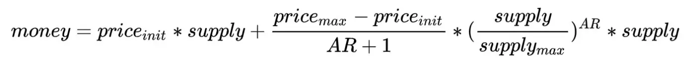 为了增加更加丰富的价格波动设计,在dex 2.0中,我们提供了指数曲线形式的价格-供应量关系。我们在smart token的初始价格,最大价格,最大供应量的基础上,增加了maxMoney参数。