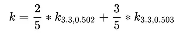 ,再根据0.5025在0.502和0.503这两点确定的直线上的位置,计算出最后的k,这个例子中k如下