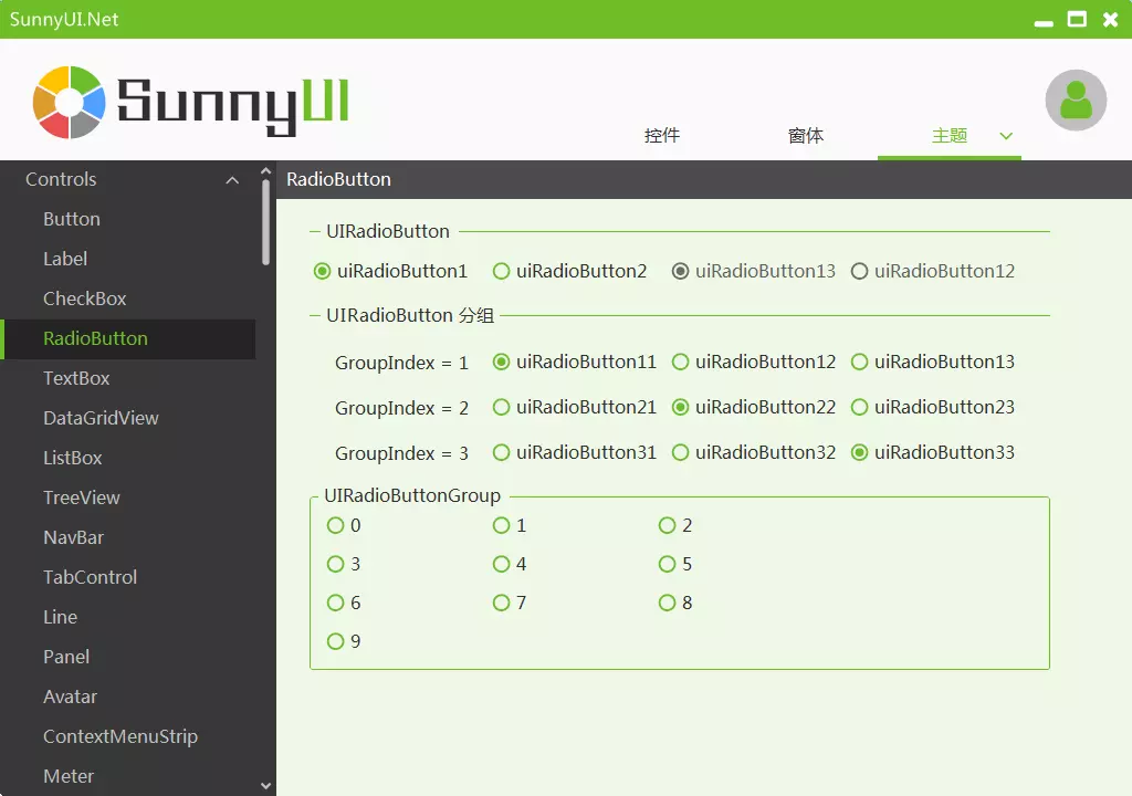 - 包含 Element 风格主题 11 个,DotNetBar 主题 3 个,其他主题 2 个,包含主题管理组件 UIStyleManager,可自由切换主题。