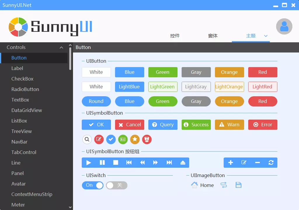 - 基于 framework4.0,原生控件开发,参考 Element、DotNetBar 主题风格,包含 Button、Panel、TextBox、CheckBox、RadioButton、TabControl、NavBar、DataGridView在内的常用控件超过 40 个,满足常规开发需求,每个控件都精雕细琢,注重细节。