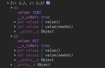 这里,我们用到了 toRefs 方法。这个也算是 vue3.0 给我们提供的一个语法糖函数了。通过 toRefs 函数,它可以将 reactive 对象,转化为普通对象,而它的每个 key 值,都会是如 ref 数据那样的格式,打印出来如下图所示: