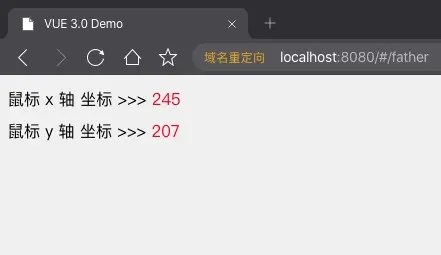 鼠标 x 轴 坐标 >>> <span class="red">{{ x }}</span> <br>