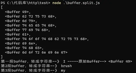 console.log("第一段buffer,转成字符串--》",arr2[0].toString(), '-----原始Buffer-->',arr2[0])