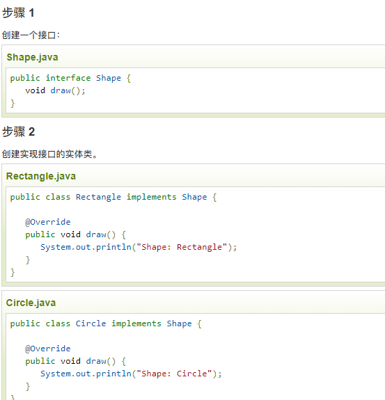我们通过下面的实例来演示装饰器模式的用法。其中,我们将把一个形状装饰上不同的颜色,同时又不改变形状类。