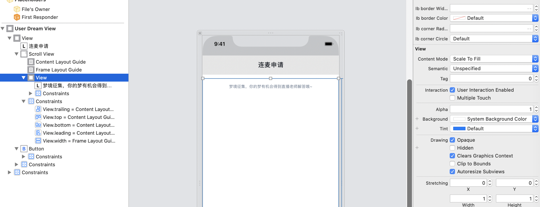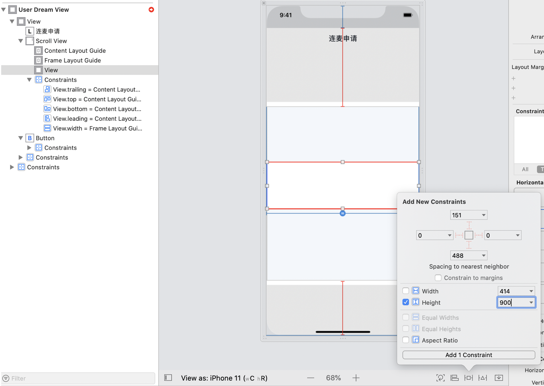 - 完成UIScrollView滚动内容的布局设置,这个是Content Layout guide的部分