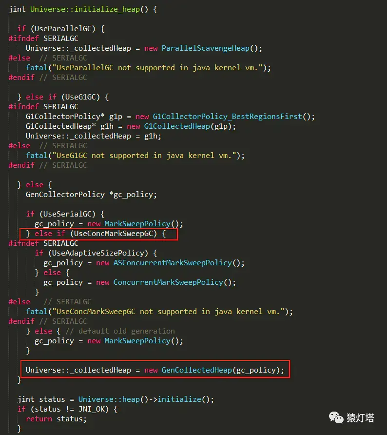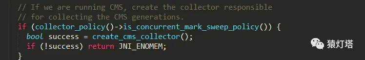 init方法为对应的分代分配内存空间;5、如果当前的GC策略为ConcurrentMarkSweepPolicy,则通过create_cms_collector创建GC线程。
