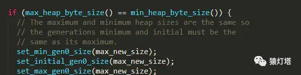 3、如果最大堆_max_heap_byte_size等于最小堆_min_heap_byte_size,则设置新生代的初始值、最小值和最大值为max_new_size,否则执行步骤4;