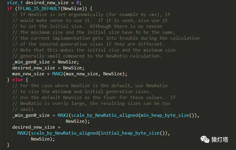 2、否则通过scale_by_NewRatio_aligned方法根据NewRatio和_max_heap_byte_size重新计算max_new_size值,其中NewRatio默认为2,表示新生代的大小占整个堆的1/3;